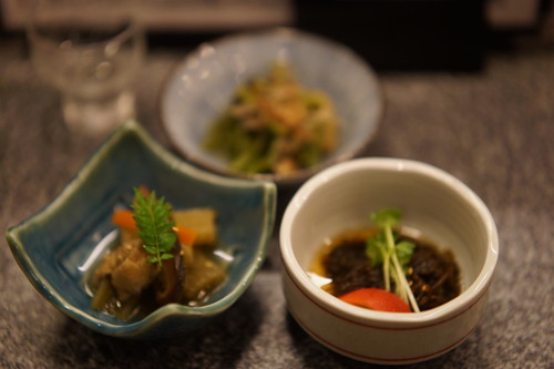 おばんざい3種がこちら。木の芽も贅沢に使ってくれていて山椒好きにはたまりません。