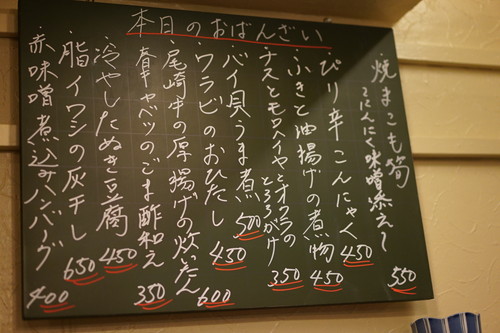 毎日のおばんざいはすぐそばにある黒板に書かれていました。