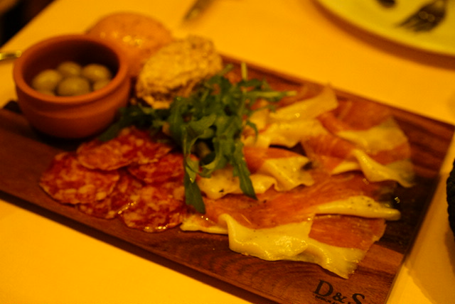 ・シャリュキュトリー(生ハム・サラミ・レバームース・リエット・オリーブ)の盛り合わせって