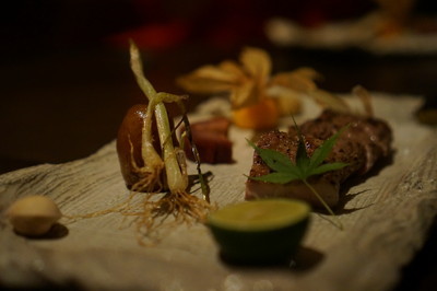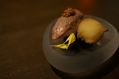 米沢牛の炙り&いぶりがっこのお寿司