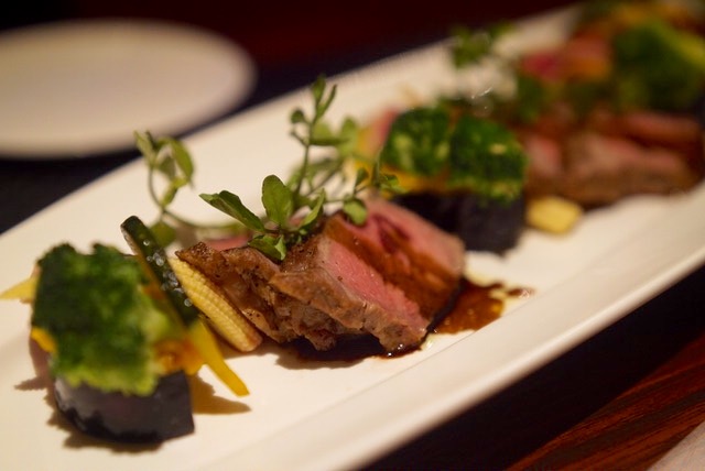 「US産サーロインのロースト 8年熟成のバルサミコソースと夏野菜を添えて」