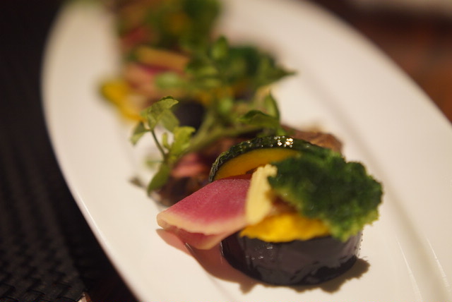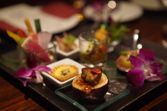 私が好きだったのは、イチジクのブリュレ フォアグラのポワレ添え。イチジクの上に飴のようなものがかかっていてパリパリ。濃厚なイチジクと飴部分の食感の違いがうれしい。それぞれ1口サイズでいろいろ食べられるのがうれしい。