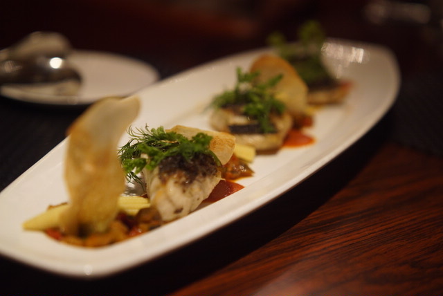 「スズキのポワレ プロバンス風タプナードソース」