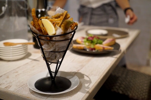 驚いたのがこのわかめのフリット。わかめって肉厚なイメージがなかったのですが茎わかめの中でもかなりしっかりとした歯ごたえと食感でお気に入りメニュー。揚げたてがおいしいのでささっと食べましょう。これはまたリピートしたいくらいお気に入り。