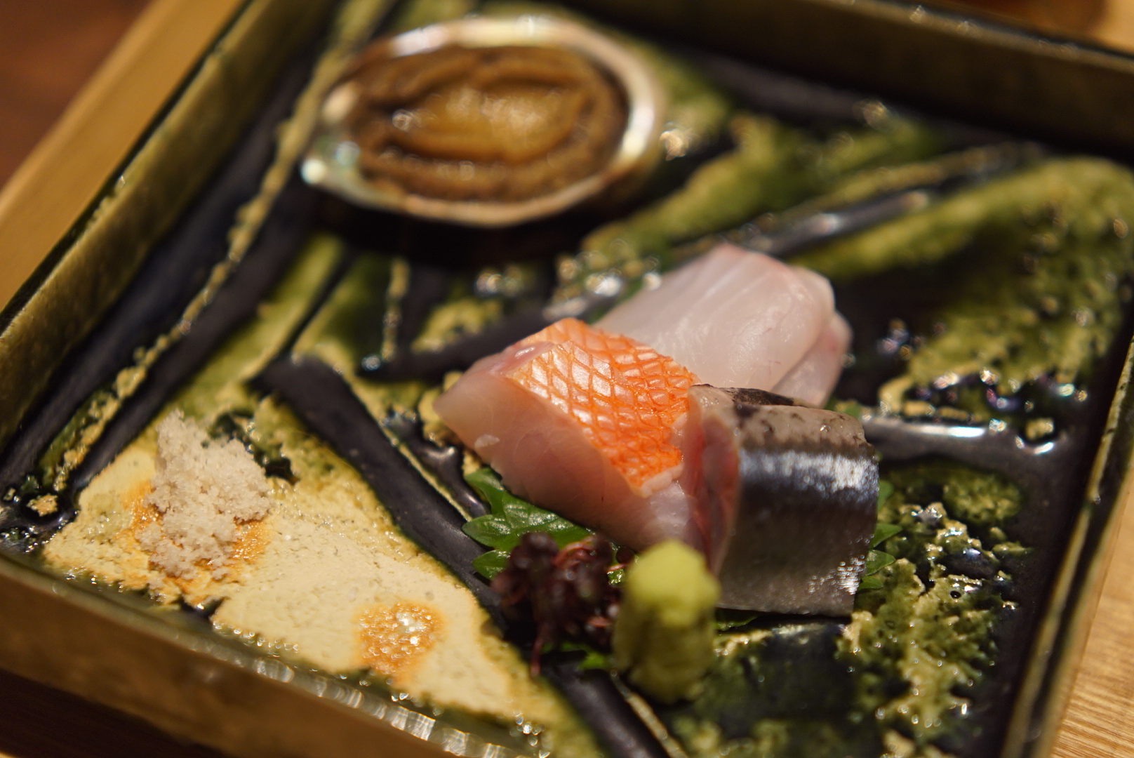【御造り】 鮮魚三種盛り 鮑の冷製