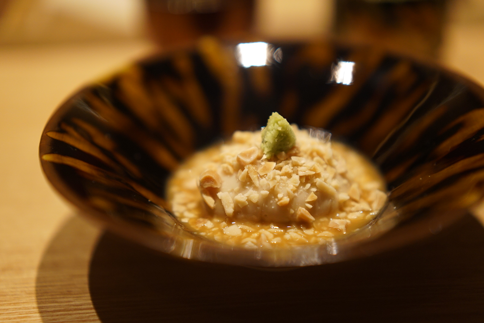 落花生が濃厚で濃厚なお豆腐。見た目も華やかで気分が上がります