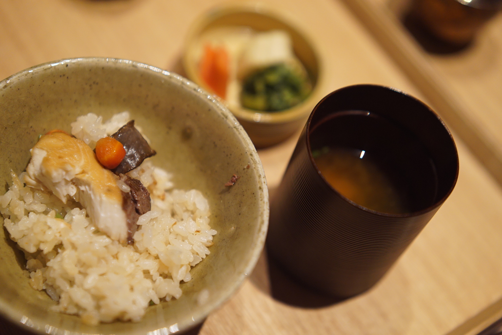 【食事】 鰤飯釜焚き 味噌汁 香の物