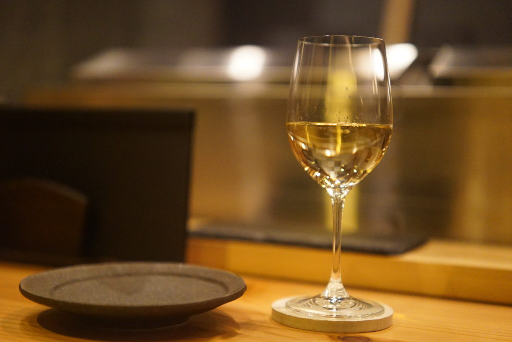 まずはグラスワインの白を。