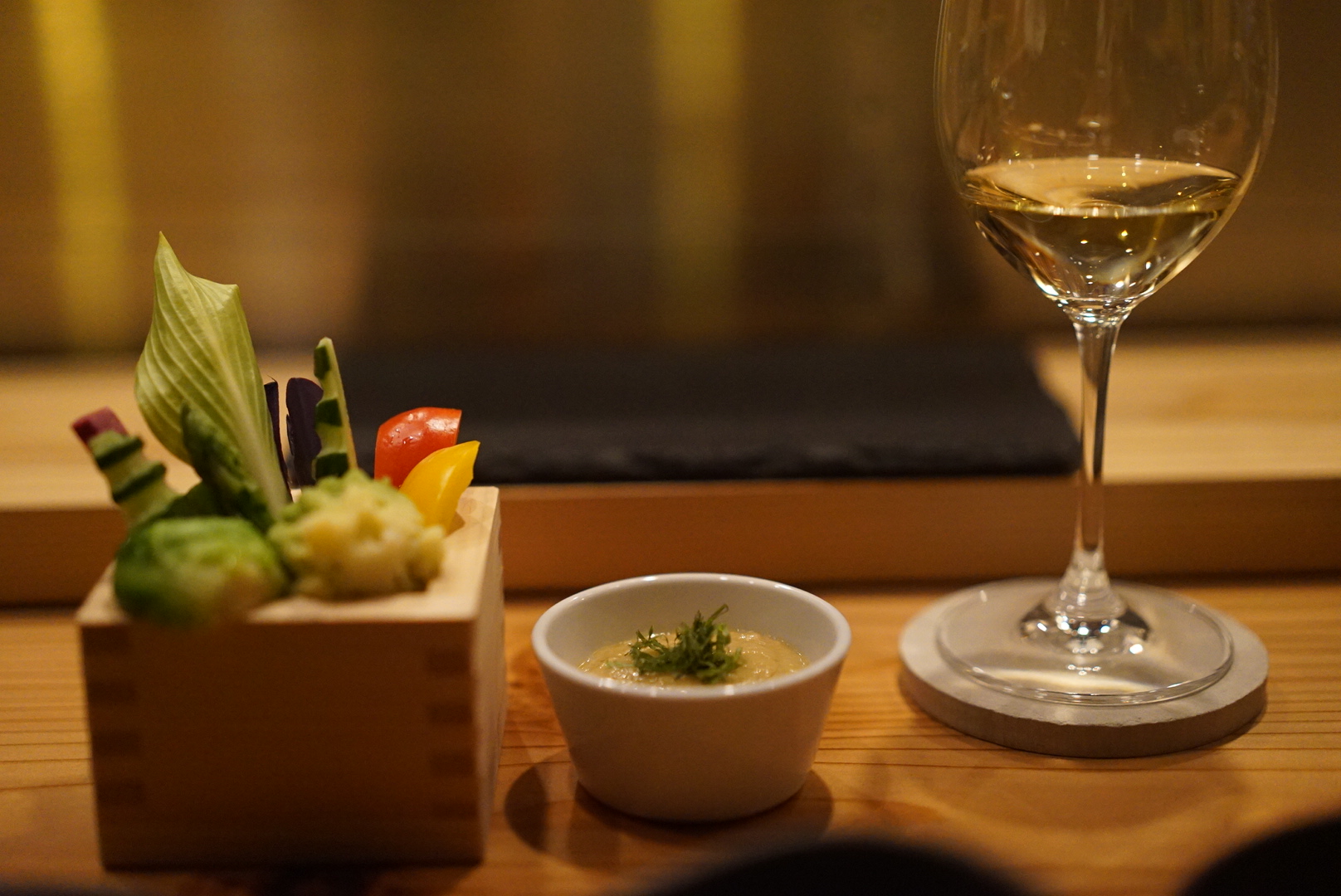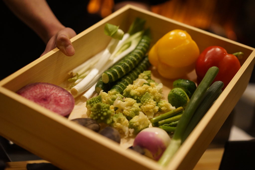 季節の生野菜のバーニャカウダは、盛り付ける前に野菜を見せてくださいます。ここで苦手なものがあれば伝えましょう。私は全部大好きな野菜ばかりでした。少し変わったお野菜を使っているみたいですね。