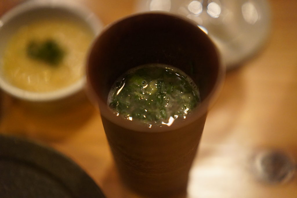 ちょうどワインがなくなったので、お店イチオシの日本酒「五橋Zファイブグリーン」を。きわ”みどり”だから、グリーンと名の付くお酒を入れたのかな?と妄想しつつお店の方には聞けなかった(笑)フレッシュでおいしい、とてもいい日本酒。しかも、料理とのマッチングがとてもいいです。