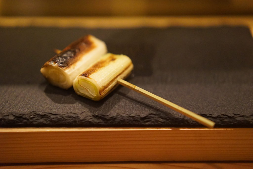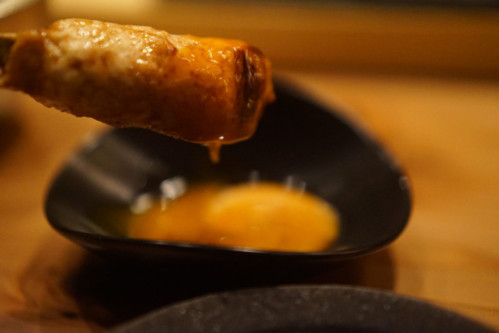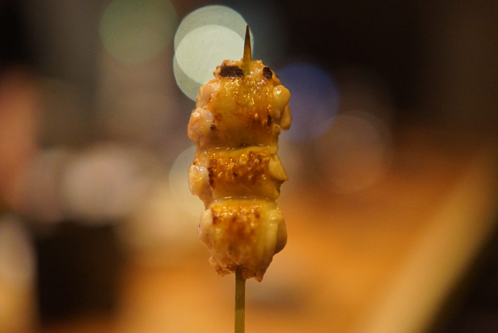 そして、焼き上がりのタイミングで焼き鳥が出てきます。食べるスピードに合わせてタイミング良く焼いてくれるので