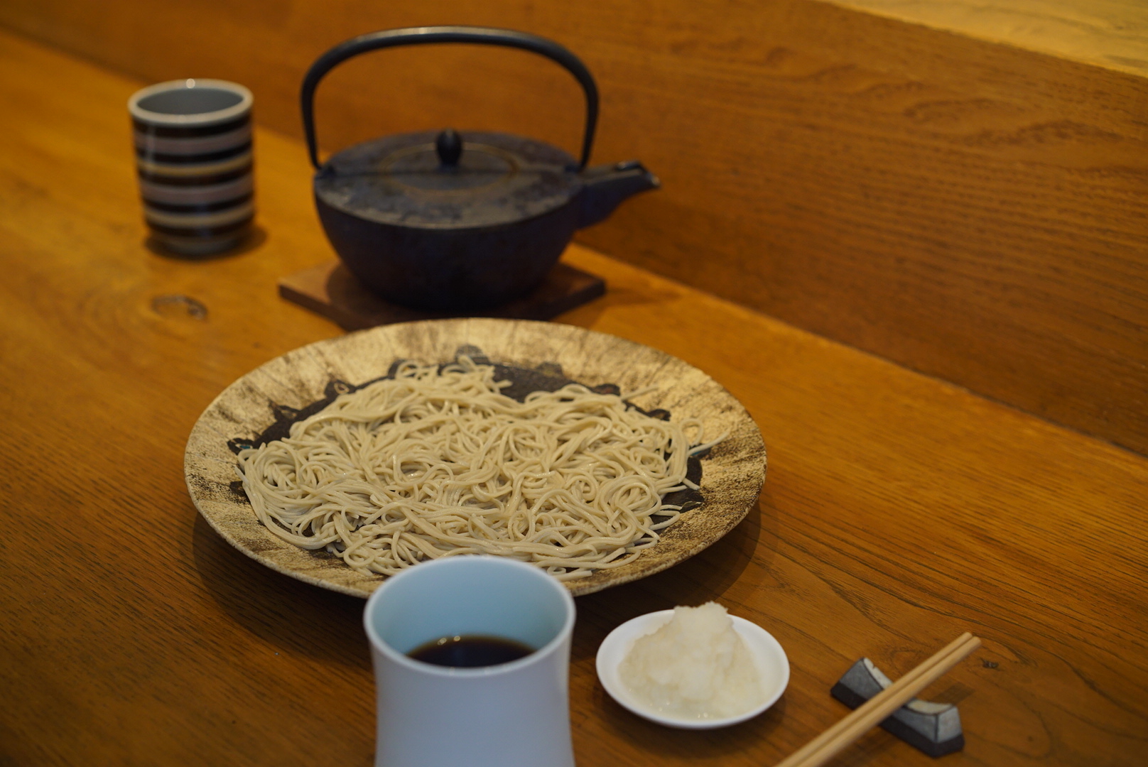 もりそばに辛味大根おろしがセットになっています。大根の辛さと汁のコラボレーションがおいしい。