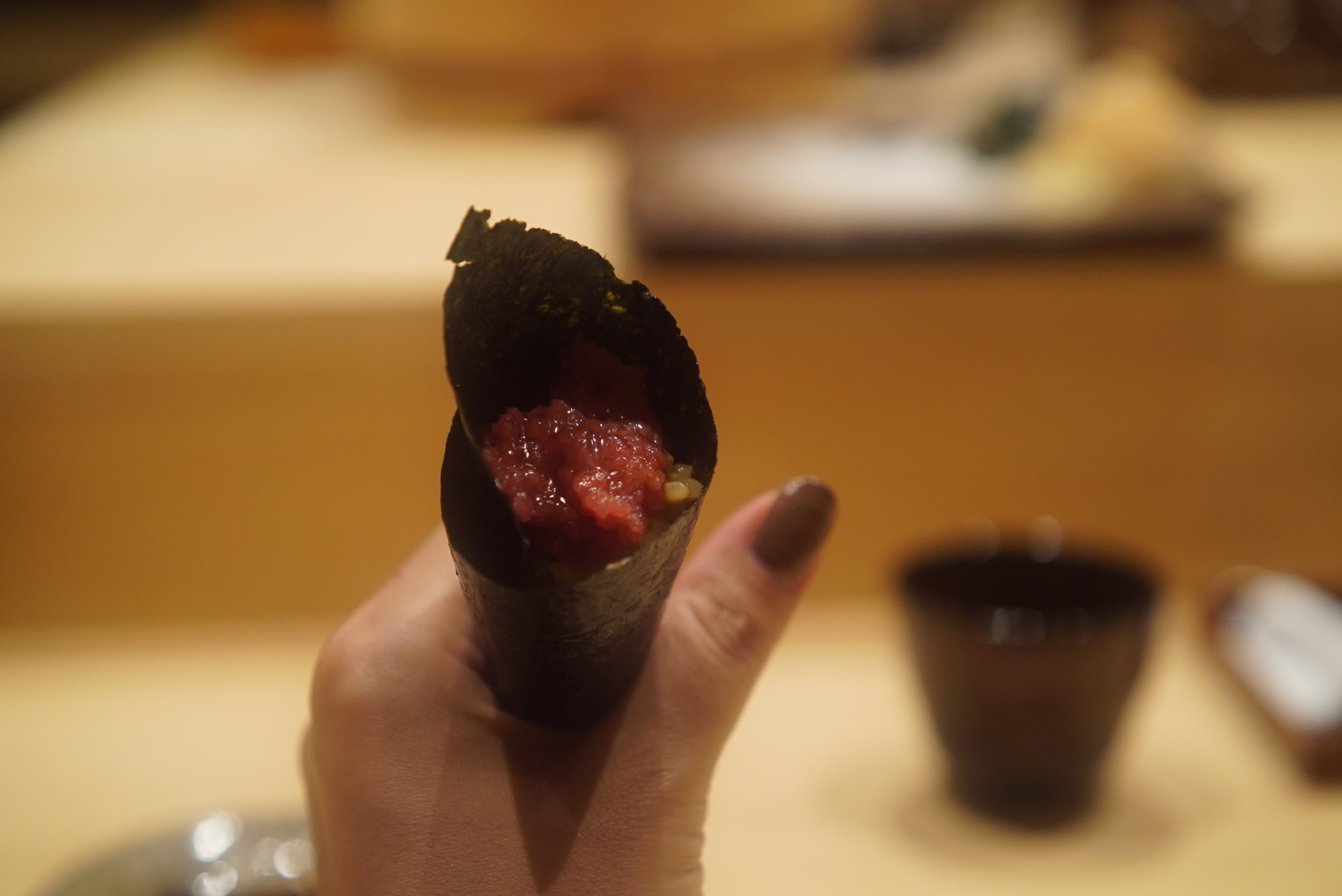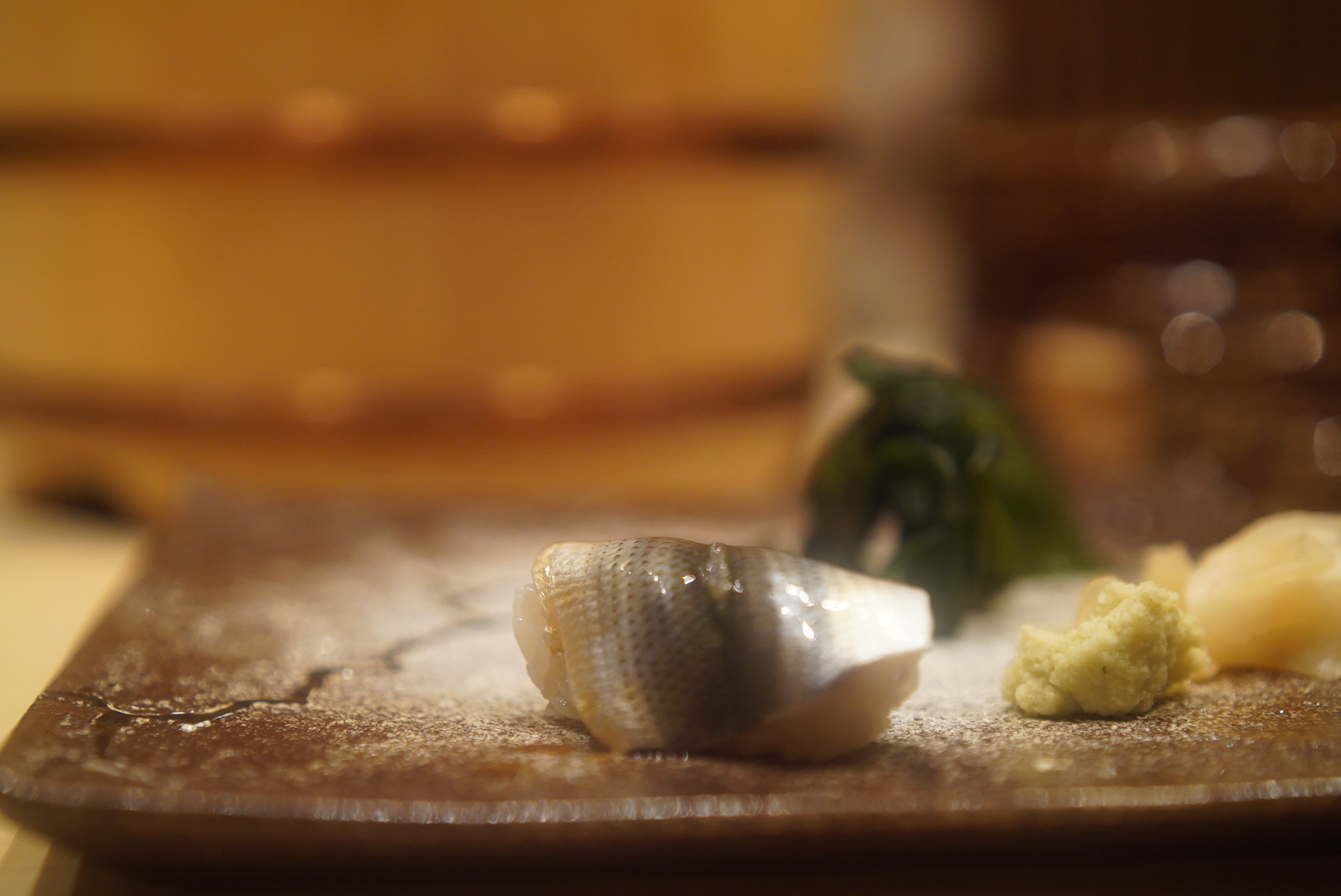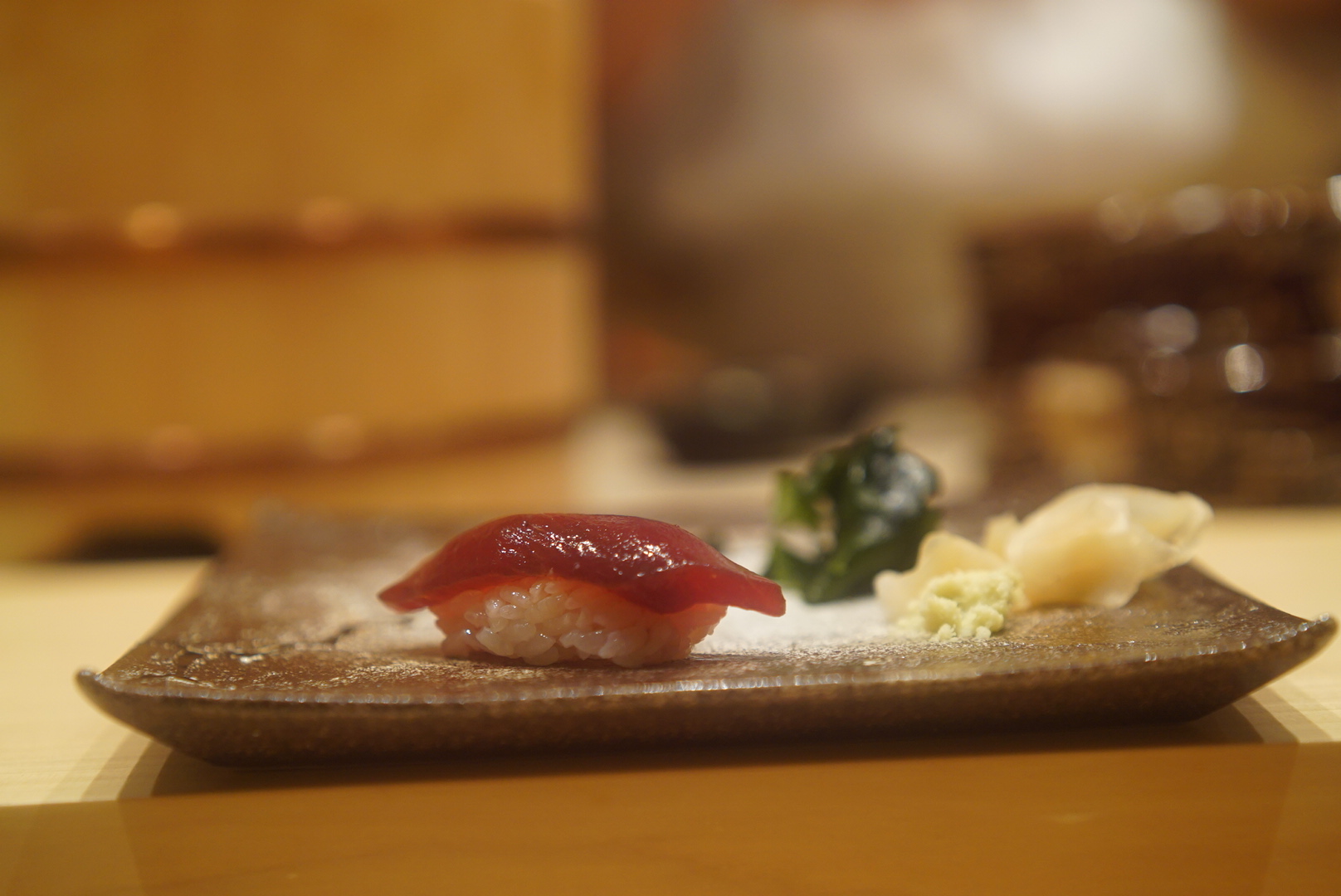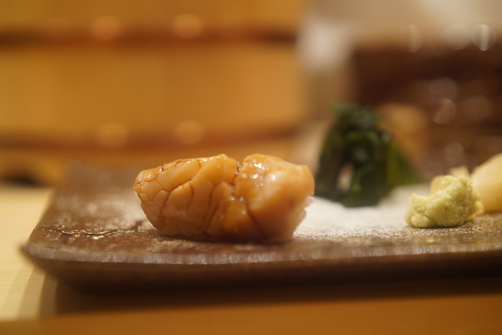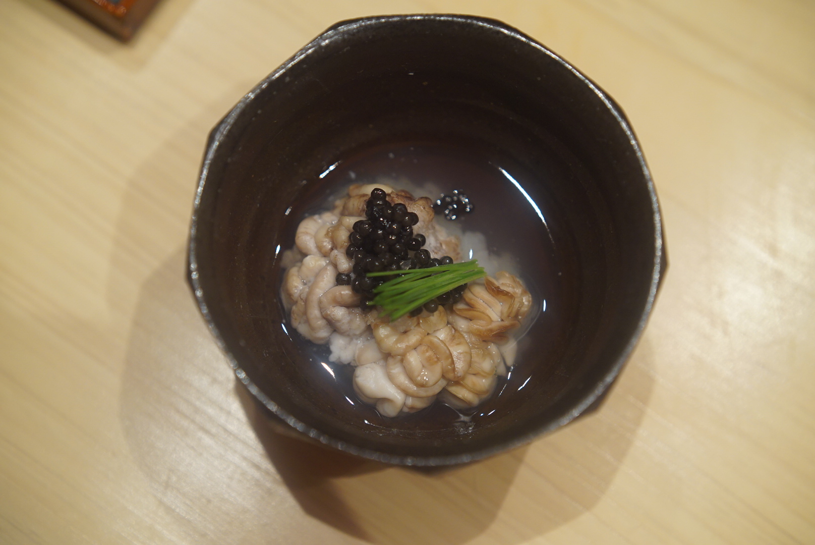 客層は海外の方を連れての接待や友人同士の食事会、デートで・・・といった様子。みなさん雰囲気も良く、カウンター内で知らないお客さんとも会話も。同じものを食べているせいか、おいしいもののせいなのか…は分かりませんが、自然と一体感を感じました。この雰囲気、好きですね。普段ならコースはちょっと厳しいかも?といったところですがおいしいものだとするする~と吸い込まれていくから不思議。