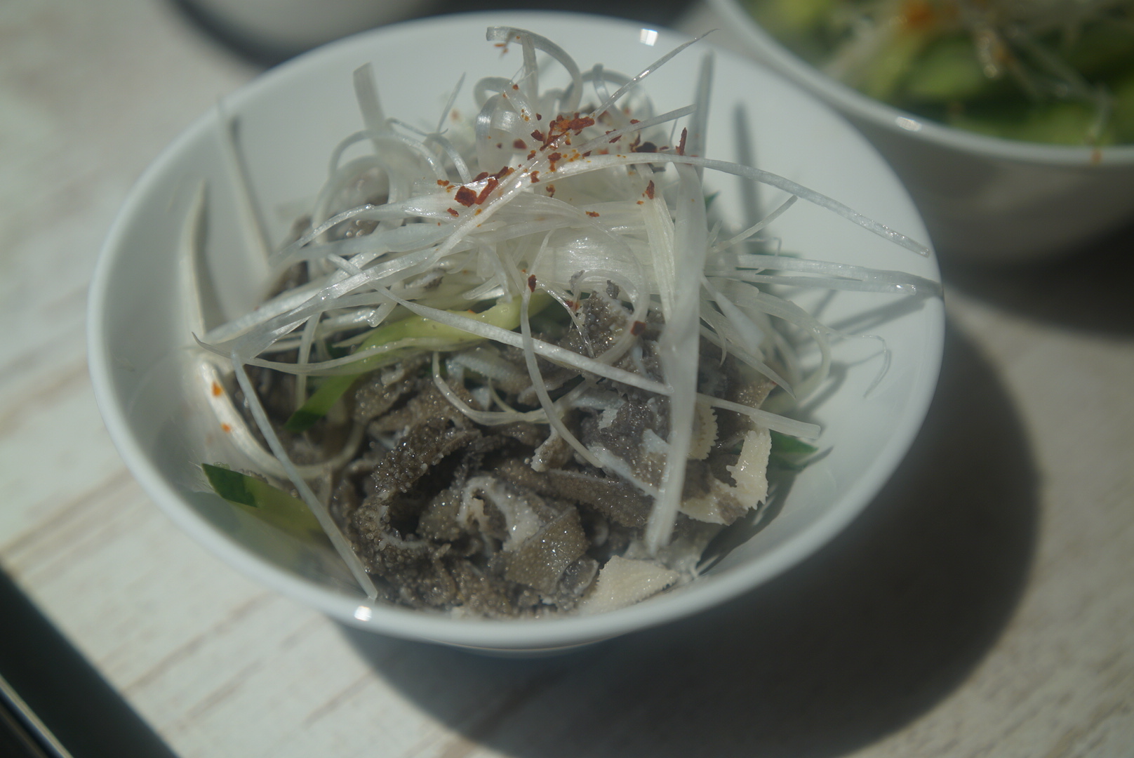 ホルモン系のおつまみがあるのも好印象ですね。白髪ねぎ・きゅうりとあえてあるのでサラダ感覚で行けちゃう。