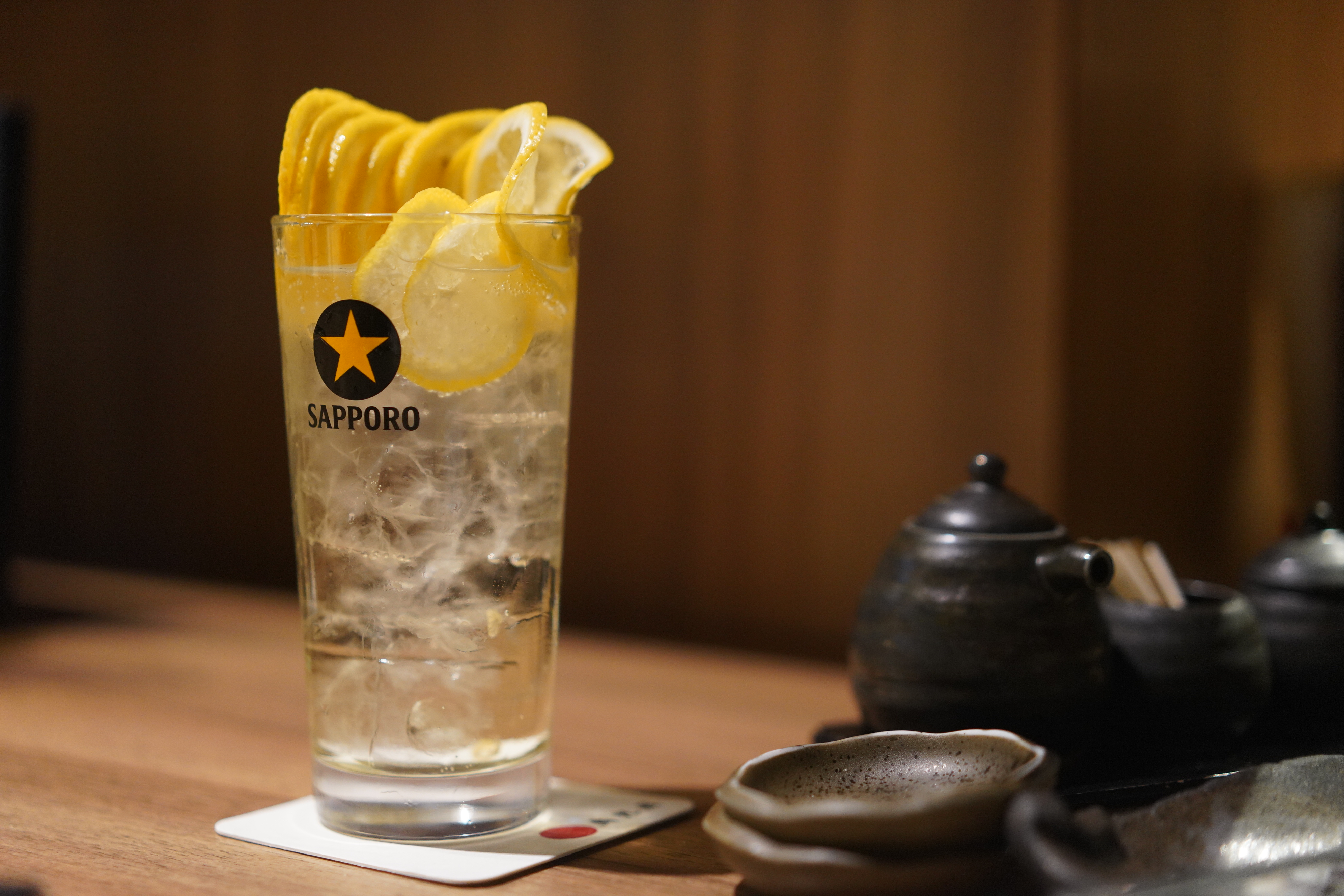 人気のレモンサワー(490円)は、レモンがこれでもか!と入っていておいしい。