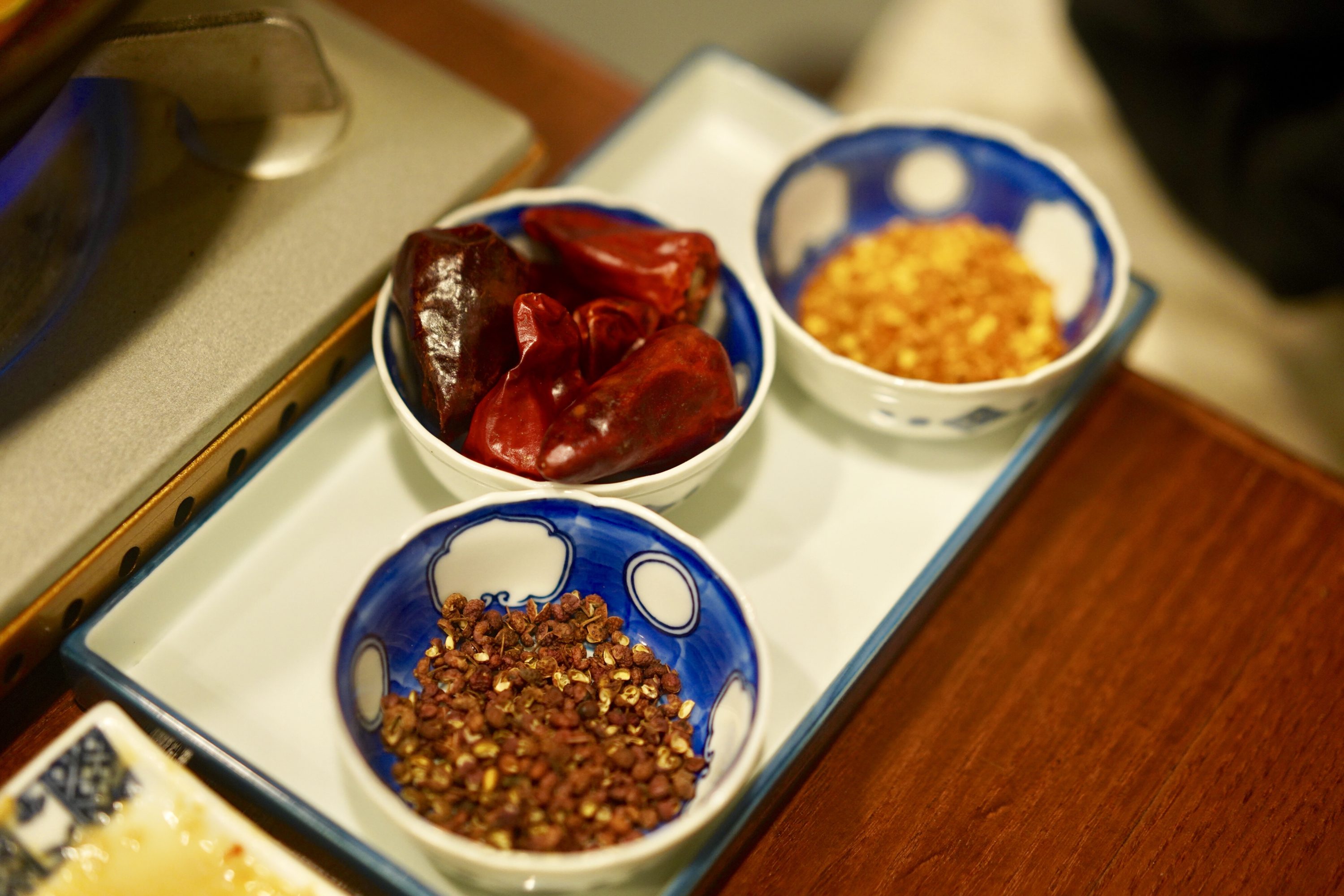 辛いのは得意です!とアピールするとオプションの痺れ辛み3種セット(450円)もオーダーしてみました。女子は辛味に強いので、辛いのが好きな人はぜひチャレンジしてみてください。