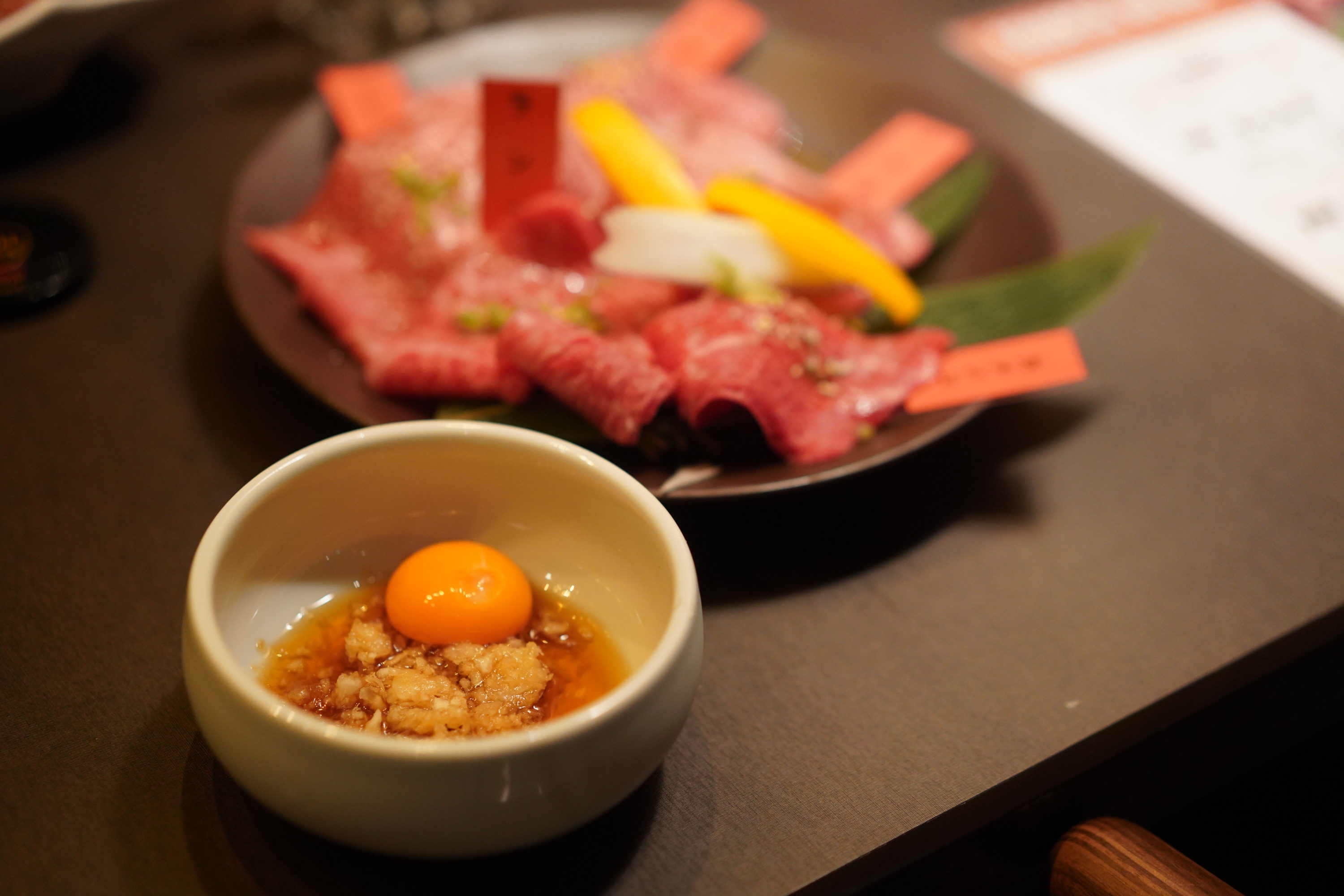 赤身のお肉も食べたい!と言ったら、赤身盛り合わせにしてくれました。ランプ・カメノコ・メガネ・シンシン・イチボと食べ比べできるようにしてくれた!これはお好みで大根おろし&黄身のタレでいただきます。