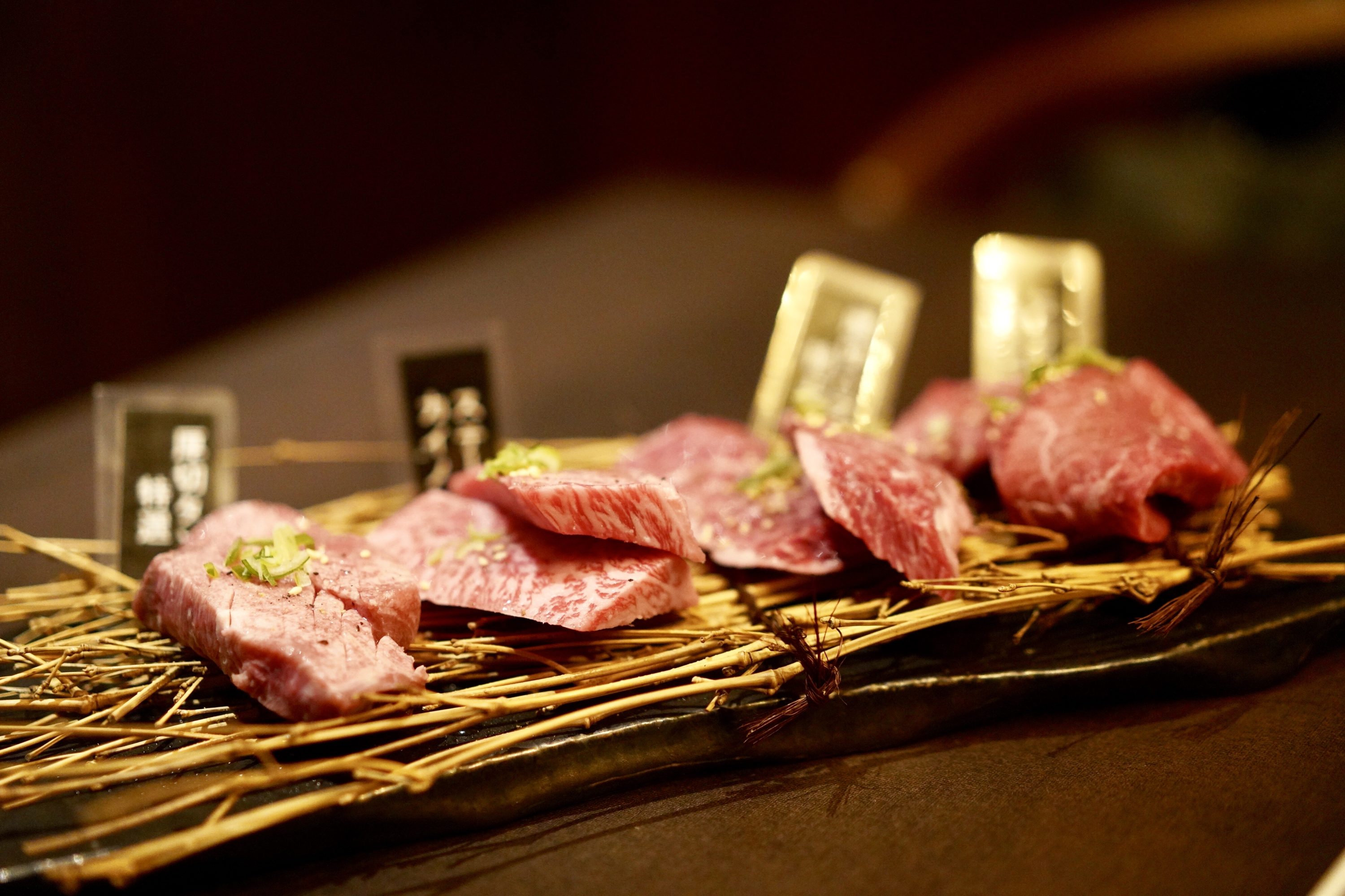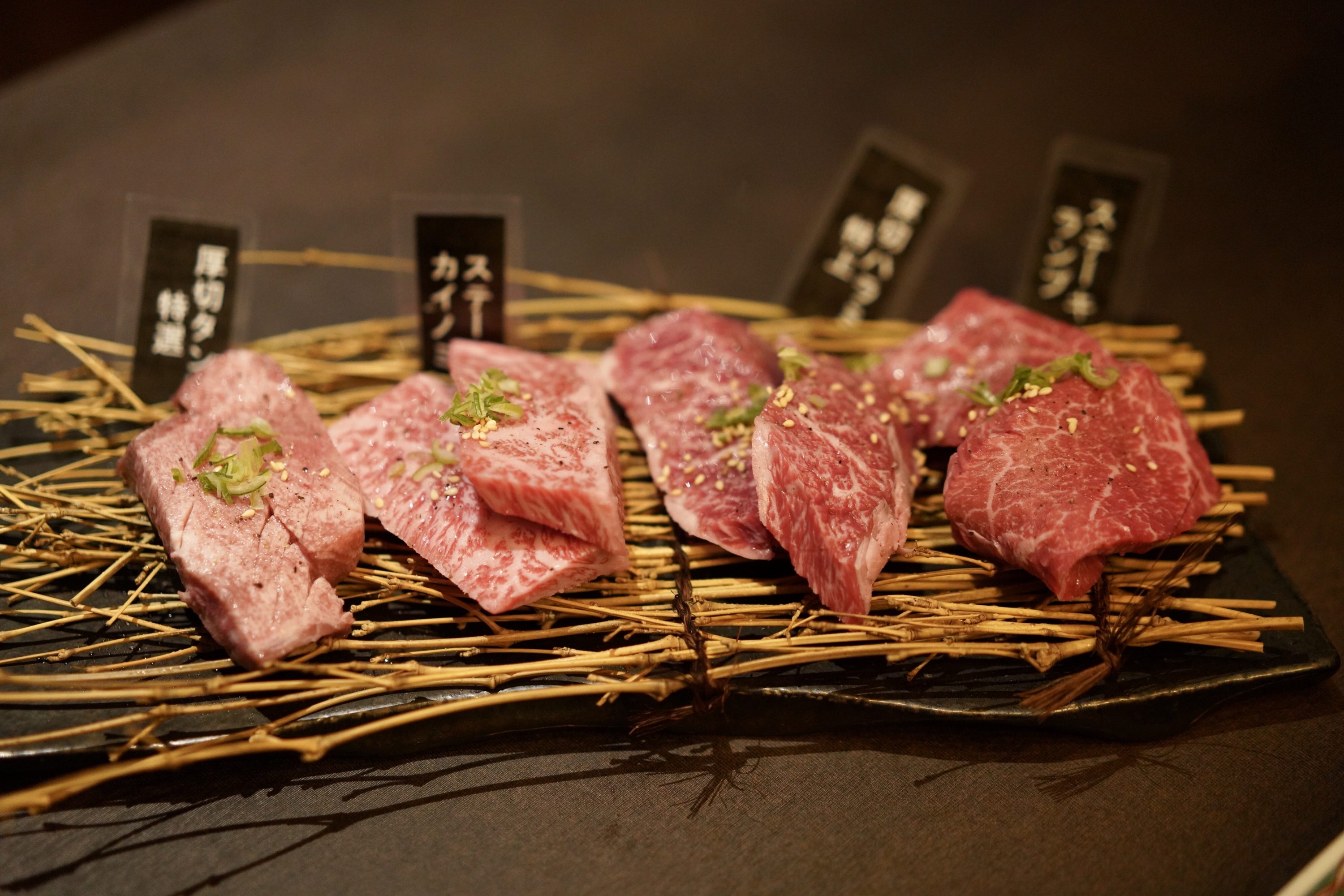 ちなみに、左から特選厚切りタン塩/カイノミステーキ/特上厚切りハラミ/ランプステーキです。お肉って焼いてしまうと見た目が一緒になってしまうし、説明してもらっただけだと名前がわからなくなってしまうのでこうしてお肉の種類をきちんと明記してもらえるのはありがたい!