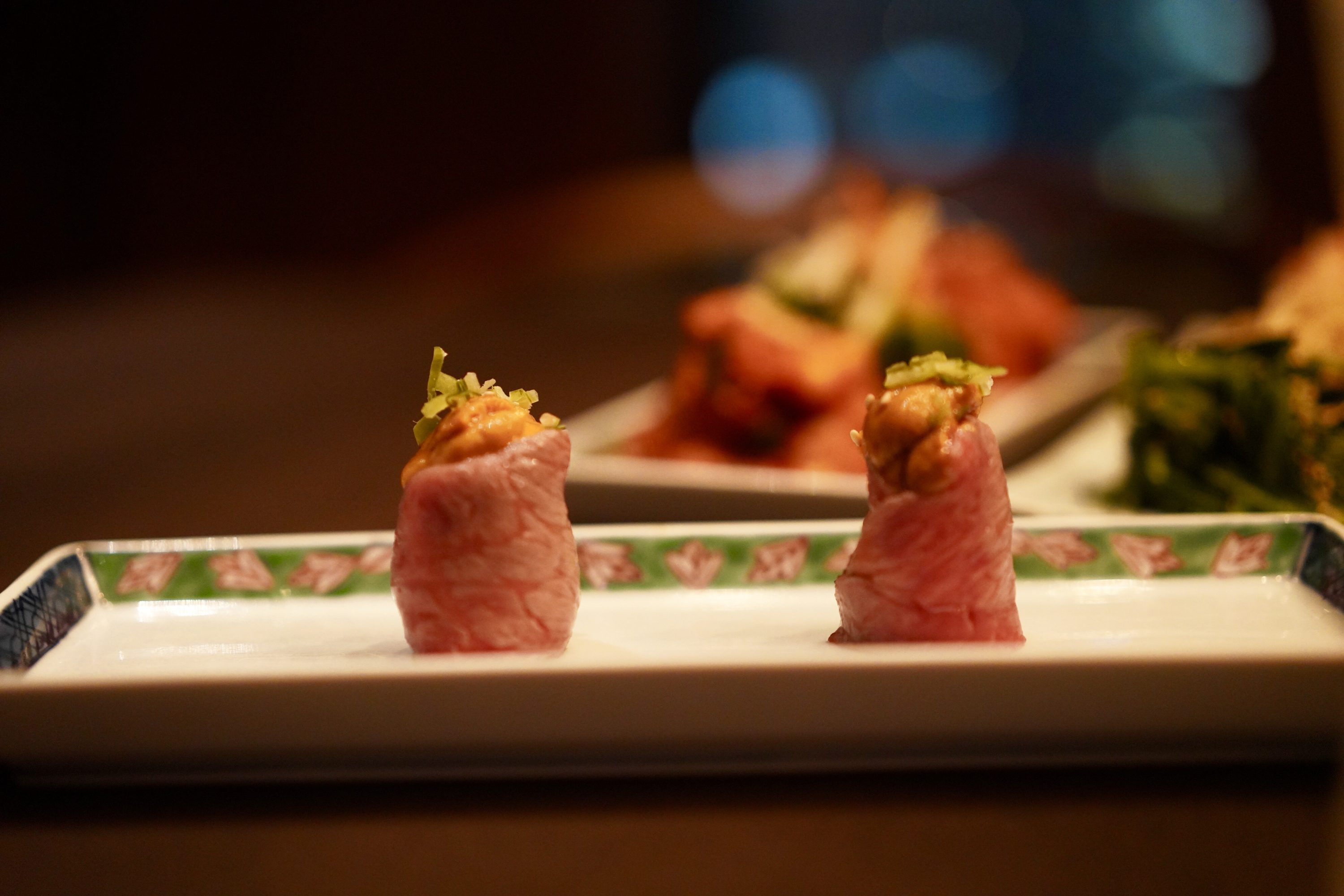SNSで見て、絶対食べよう!と決めていたのが「ウニのせ肉軍艦 (1800円/2貫)」