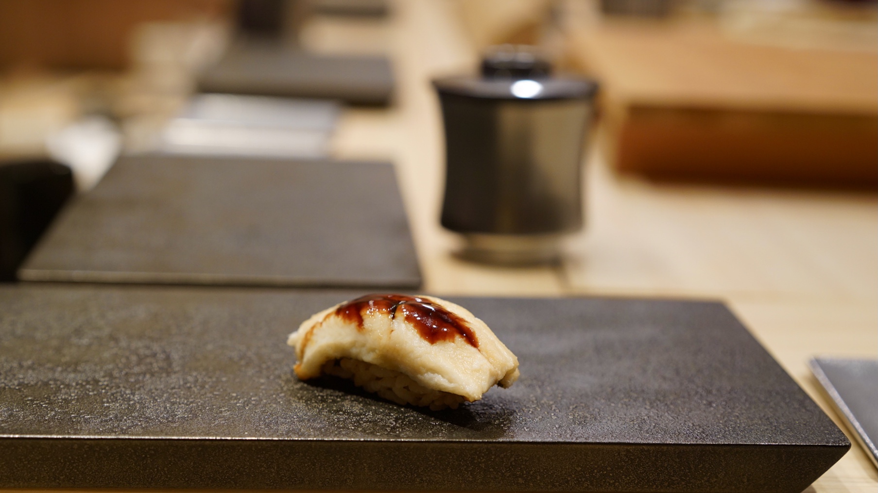 なんと!アルコール含飲み物付コース(11貫+小鉢2種+焼物+わかめ+茶碗蒸し+玉子+お椀+巻物)が13,200円で頂けるの。(私は追加メニューをお願いしたので20,000円ほど)これまでお手軽と言われていたお鮨やさんは15,000円にプラスお酒という価格帯が多かったのだけれど、ここまでコスパが良い店はない!この価格なら同僚や友人、後輩を誘って”カウンターでお鮨”という体験が躊躇いなくできてしまいますよね。私も会社の後輩に早速オススメしてしまいました。