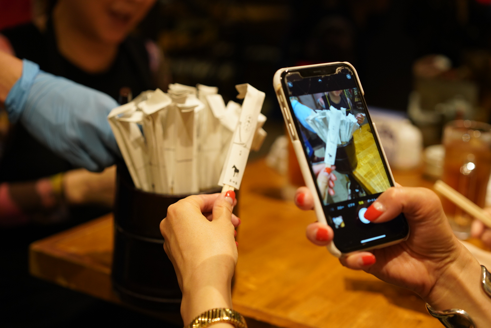 店内に入ると、想像より広くインスタ映えしそうな店内に一同テンション高め。まず出てきたのは、お通しではなく「お味くじ」です。さすが食のエンターテイメント大塚のれん街にあるだけあり、スタートから楽しませる工夫がたくさん!