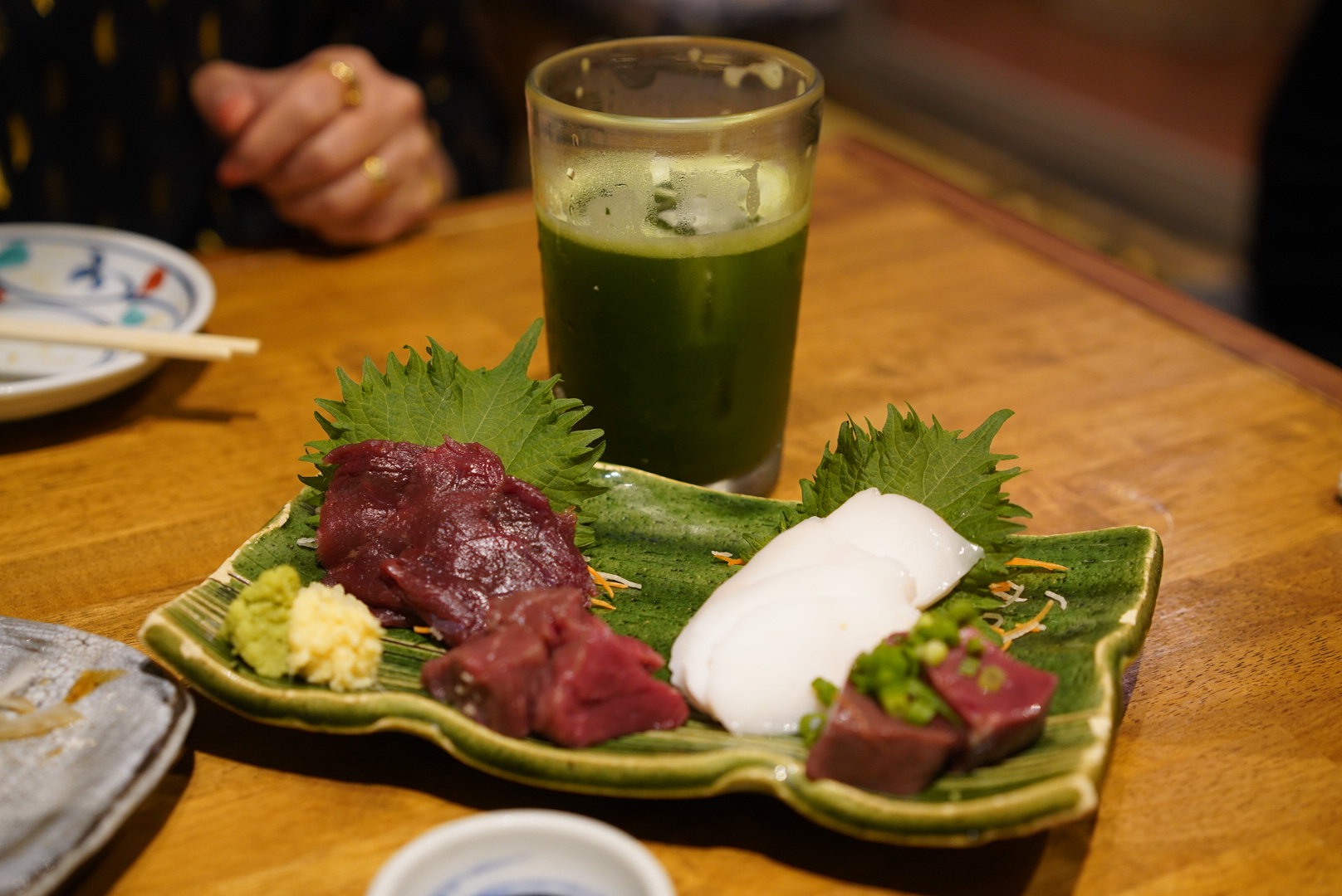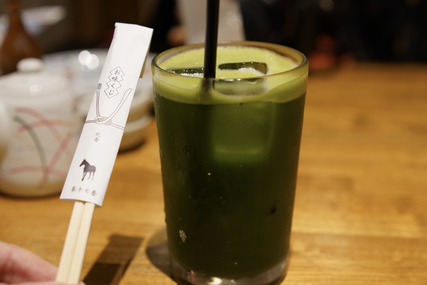 1杯目はお店で人気の「特濃抹茶ハイ」を。オーダーごとに濃いめの抹茶を茶筅で点ててくれるサービスで席がわーっと盛り上がりました。抹茶が濃く、抹茶好きにはかなりオススメです。