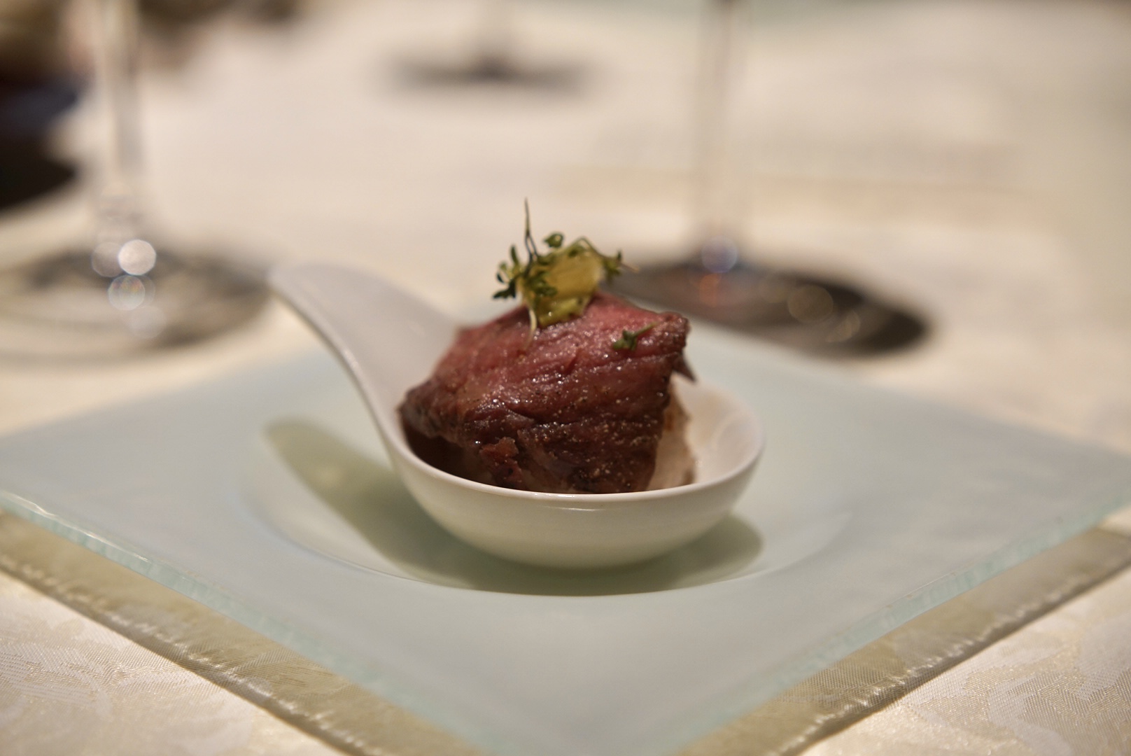6品目は「仔羊のグリル ローズマリーの香り」ペアリングするのは樹齢100年越えの貴重な「ヌフ・デュ・パフ」です。