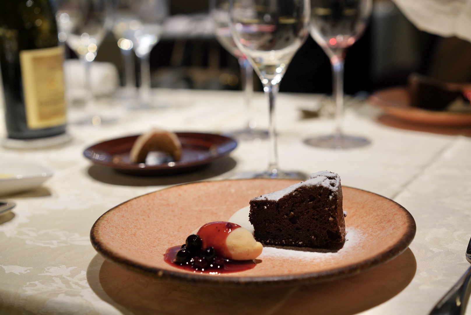 〆のデザート「ガトーショコラとアイスクリーム」に「コーヒー」でごちそうさまでした。